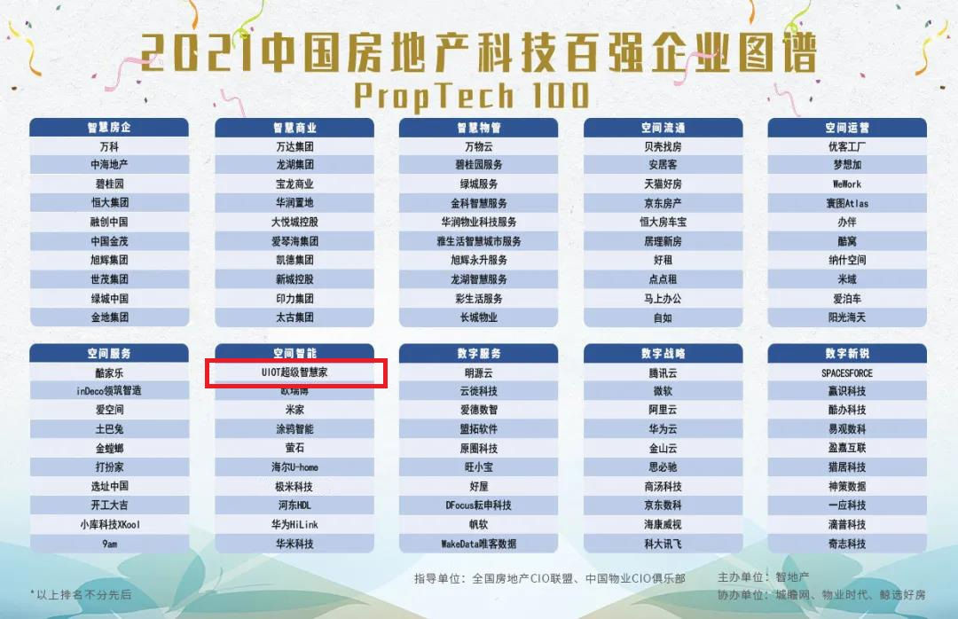 此前,UIOT超級智慧家已獲多項重量級獎項,其中包括中國智能家居十大品牌、福布斯中國最具創新力50強、中國房地產首選智能家居供應商、工業和信息化部新型信息消費示范品牌等大獎,本次入選中國房地產科技百強企業圖譜——最具期待智慧價值空間智能企業,表明地產行業對UIOT超級智慧家實力的再次認可!