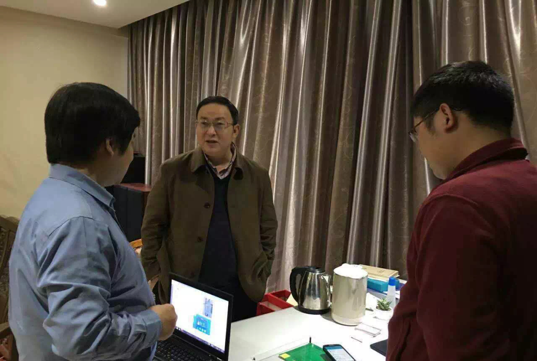 圖|葉龍與清華大學史訓清博士討論技術問題